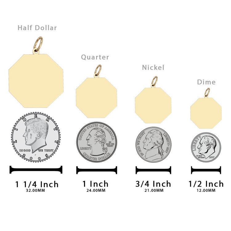 1 1/4 Inch x 1 1/4 Inch is the size of a half dollar.
